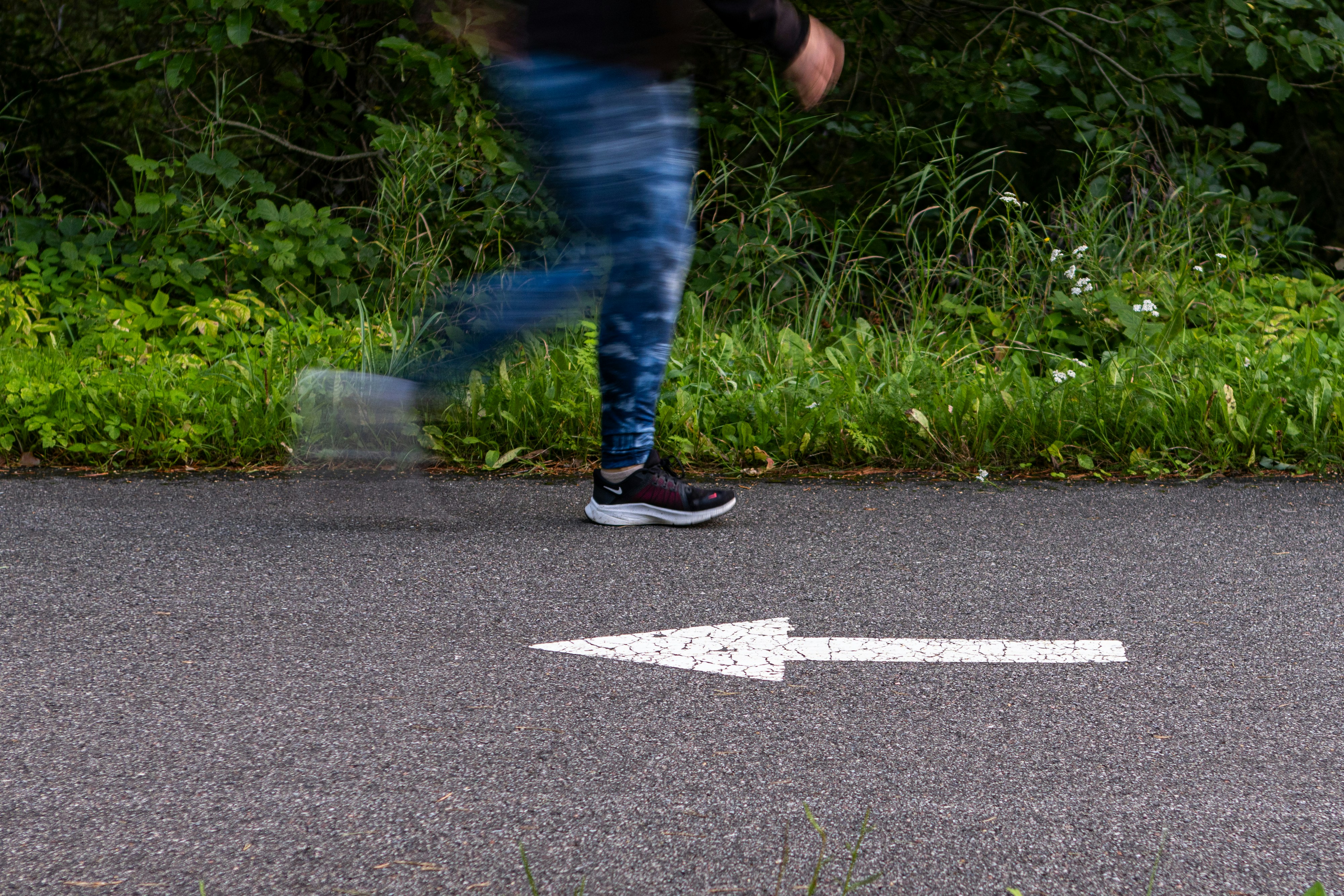 보폭은 너무 넓지 않게 유지합니다. 발이 무릎보다 많이 앞으로 나가면 제동력이 생겨 효율이 떨어지고 부상 위험이 높아집니다. 발이 몸 중심 아래나 약간 앞쪽에 떨어지도록 합니다.